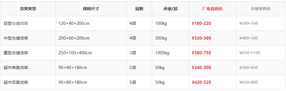 三、2026年成都货架批发价格参考表