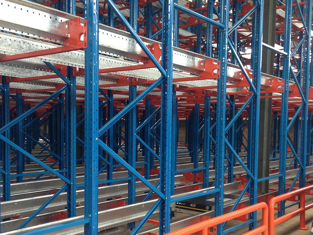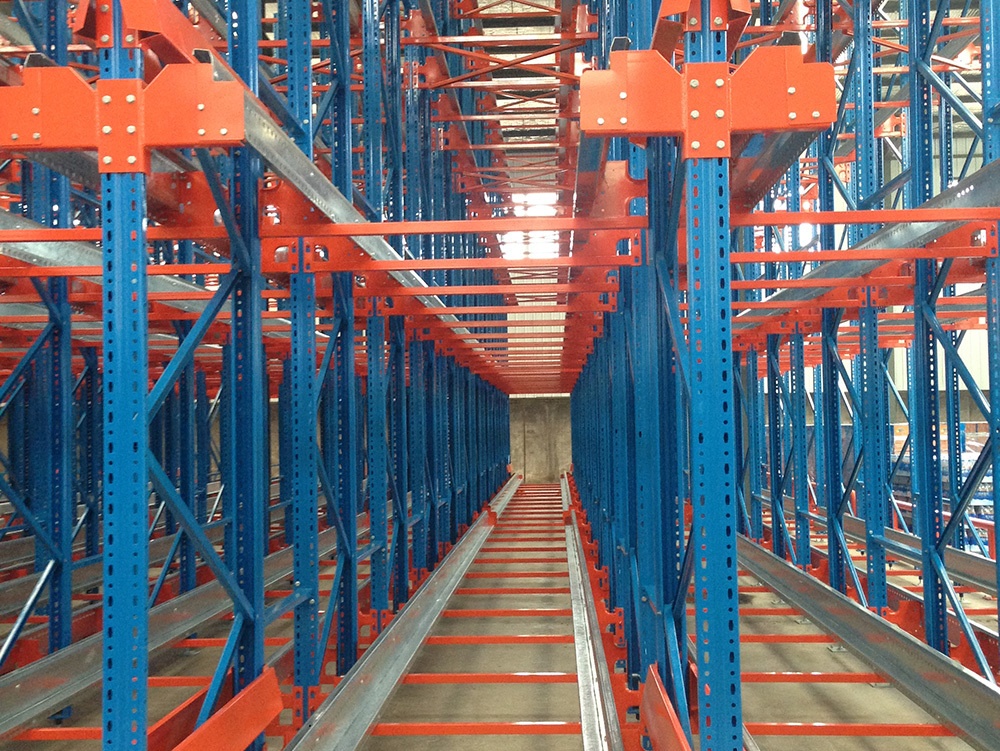 穿梭型货架通过无线电遥控穿梭车在导轨上自动存取托盘,叉车仅需在巷道口作业,大幅减少人工进入低温或高危区域的时间。其核心优势包括: